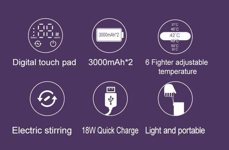 Coffee Stirring Cup Portable Usb Rechargeable Wireless Heating Smart Temperature Control Coffee&milk Mug Milk Frother